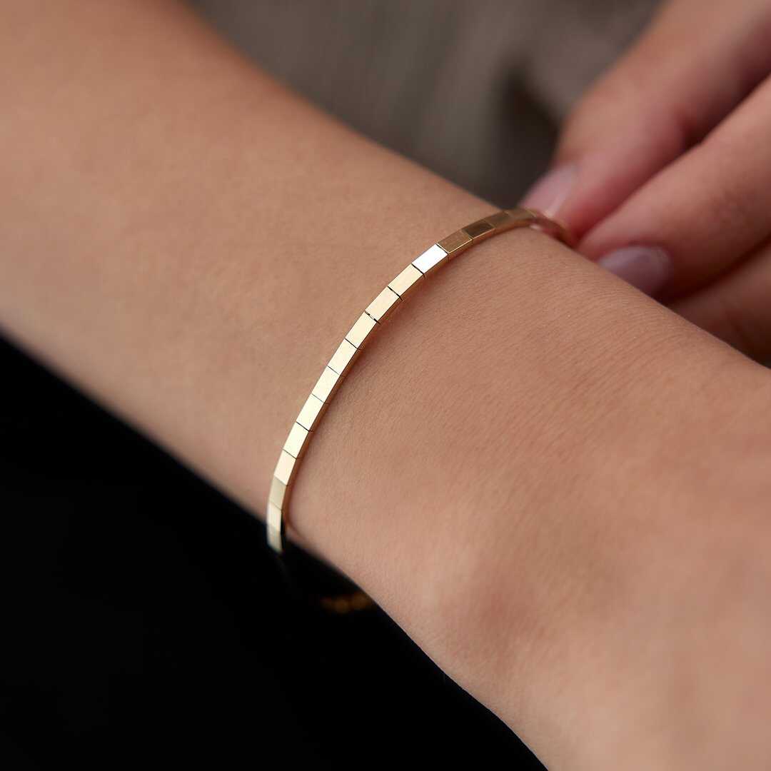 Geometrik Oval Taşlı Altın Bileklik