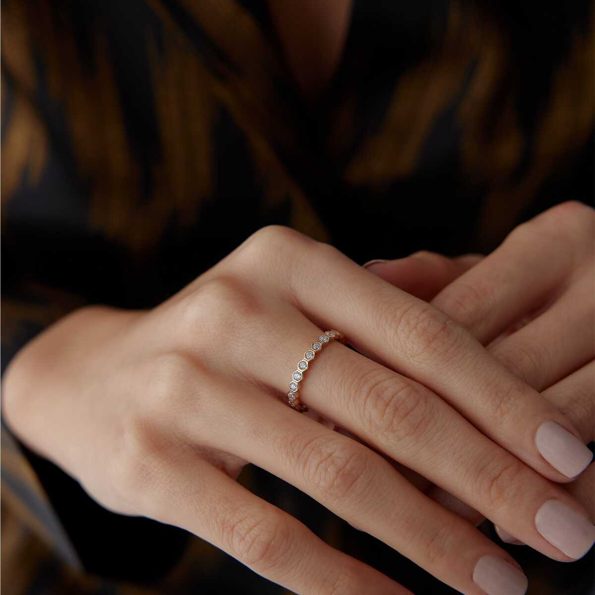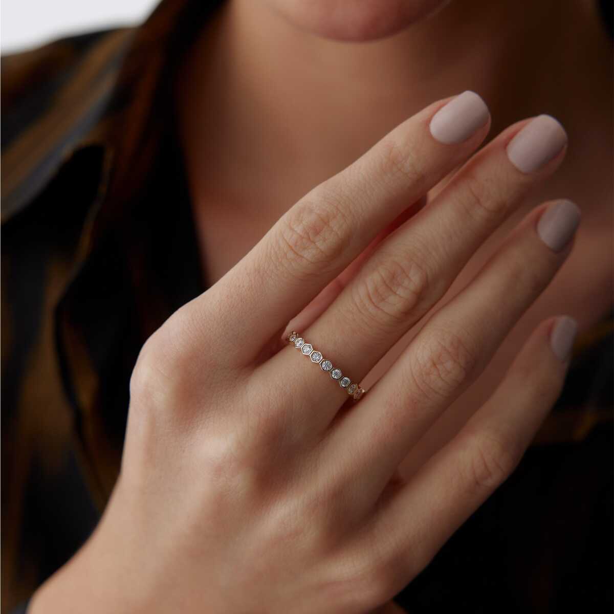 Slim Taşlı Petek Yüzük