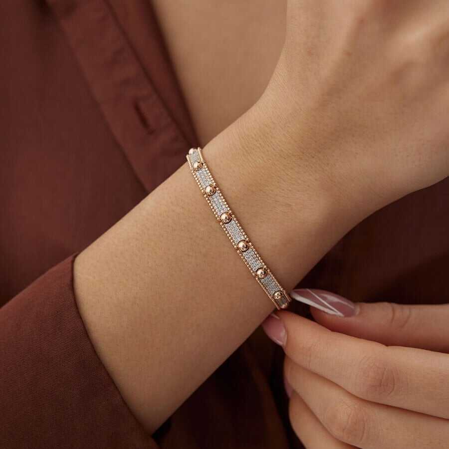 Pavé Taş Detaylı Halka Altın Bileklik