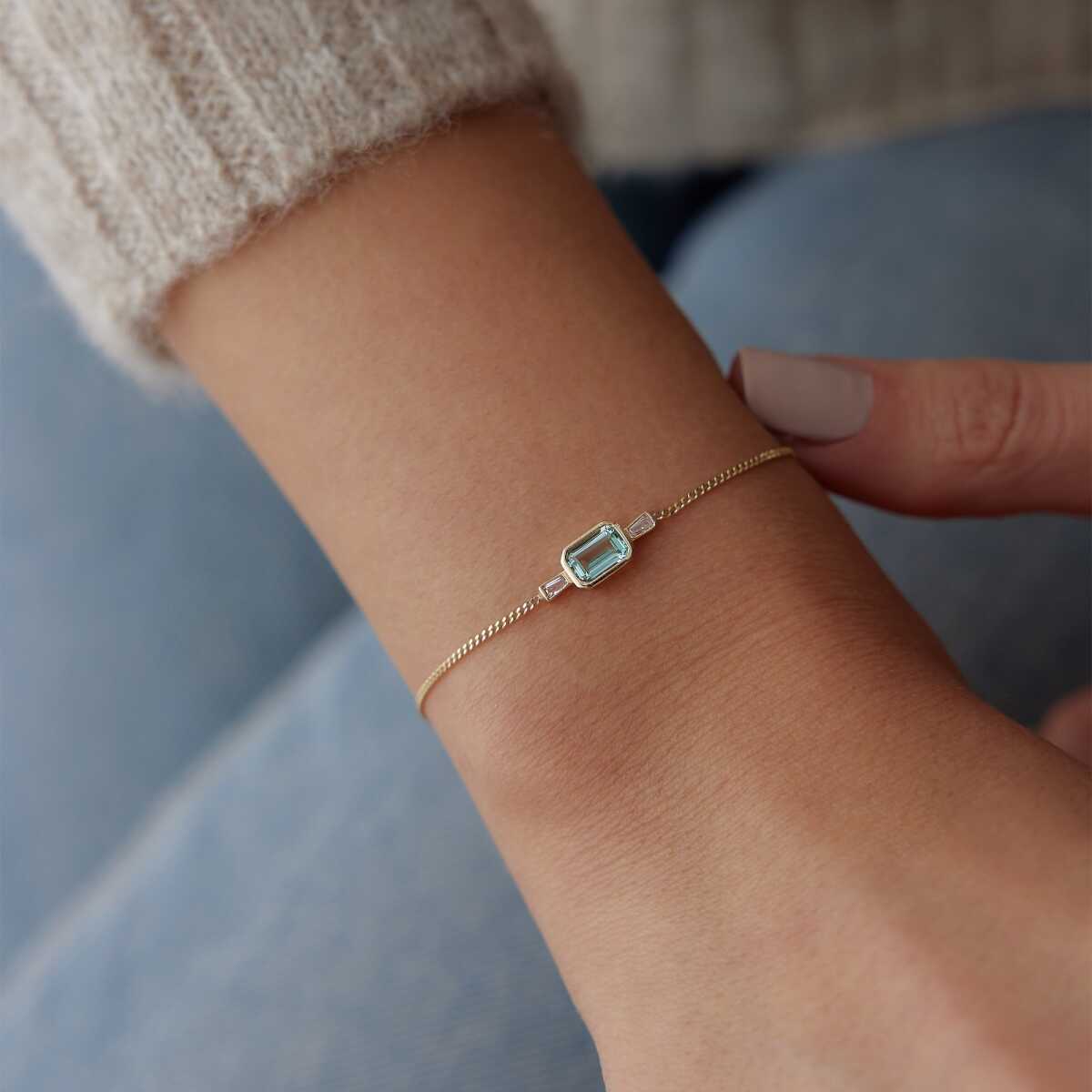Baget Mavi Taş Sıralı Altın Bileklik - Cemart Baget Mavi Taş Sıralı Altın Bileklik - Cemart (1)