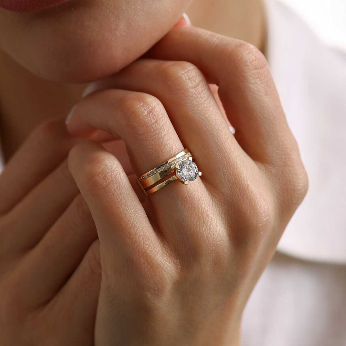 Çift Tur Alyanslı Tektaş Yüzük - Oragold Orhan Çift Tur Alyanslı Tektaş Yüzük - Oragold Orhan (1)