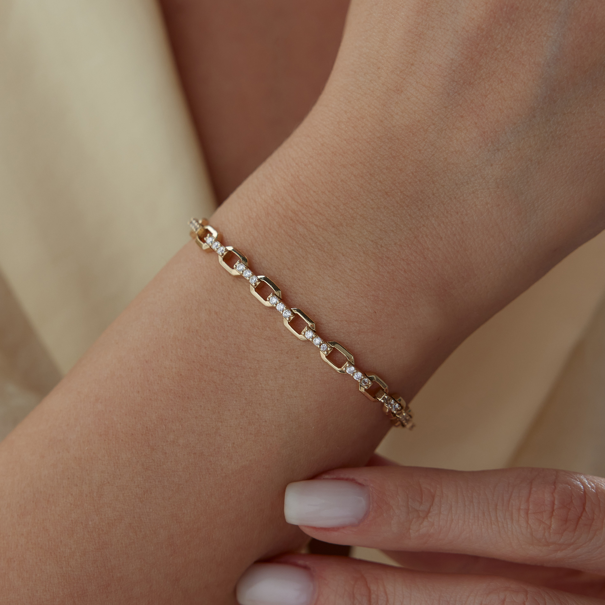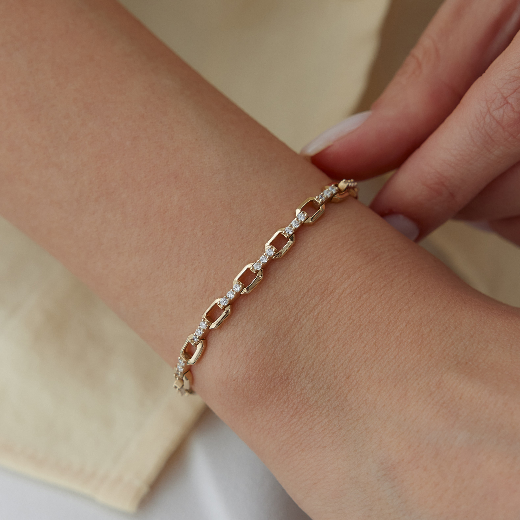 Geometrik Blok Taşlı Altın Bileklik