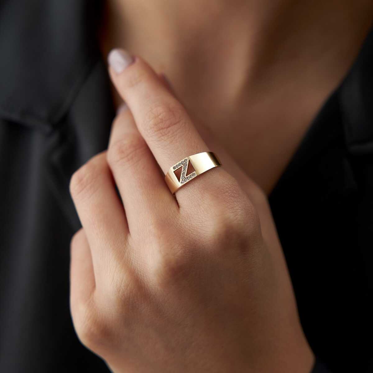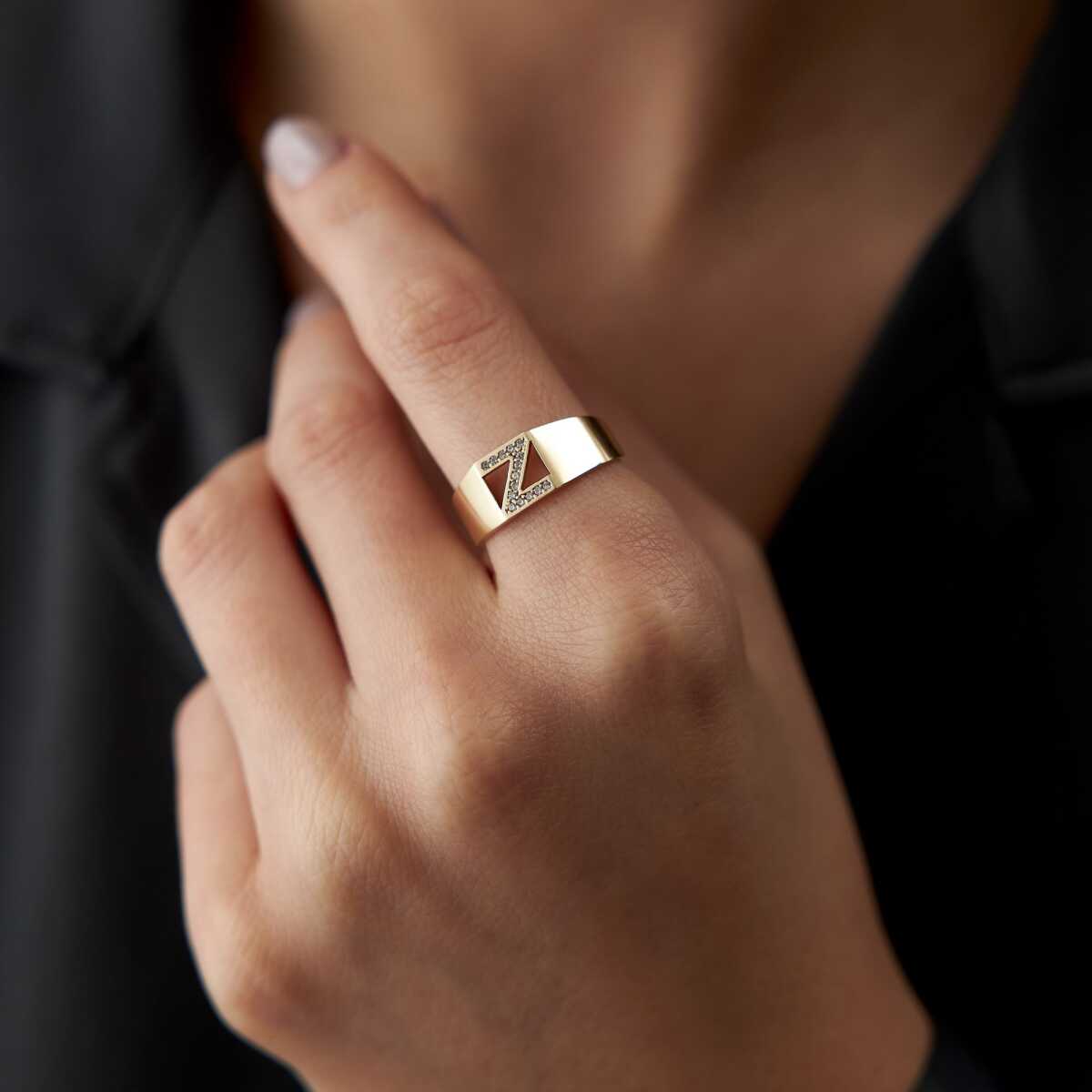 Taşlı Damga Harf Yüzük - Özçelik