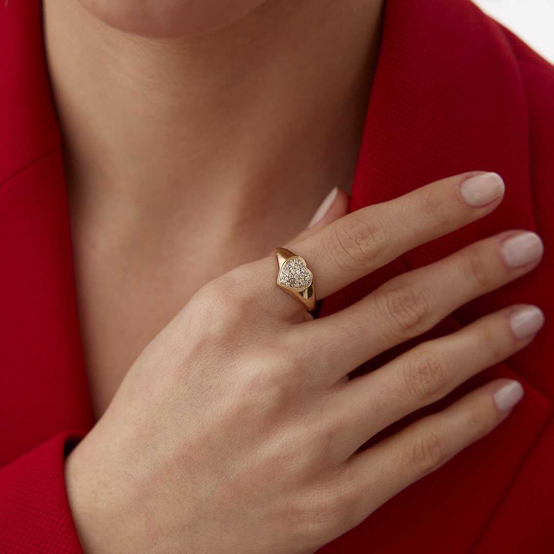 Taşlı Kalp Şovalye Yüzük