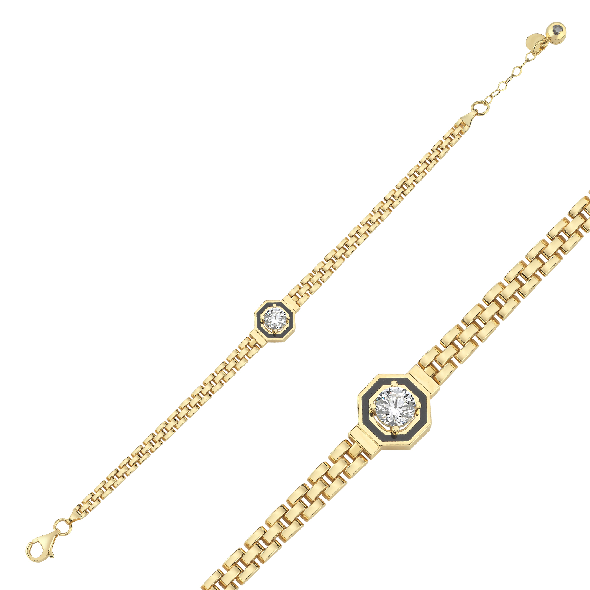 Geometrik Blok Taşlı Altın Bileklik