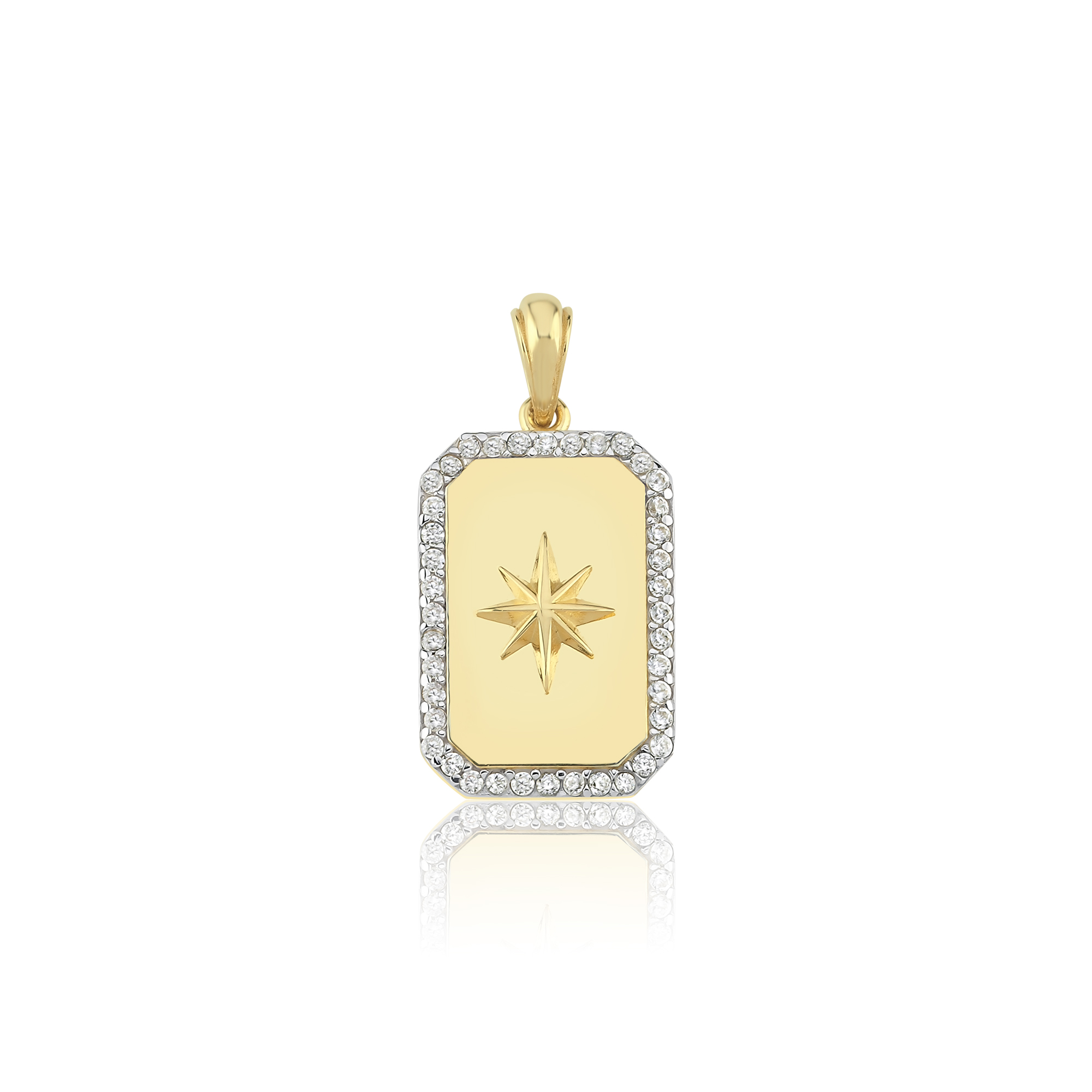 Taşlı Plaka Kutup Yıldızı Altın Kolye Ucu