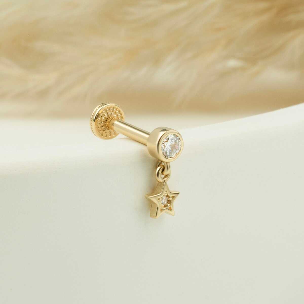 Taşlı Yıldız Sallantılı Minimal Tragus Piercing - 1