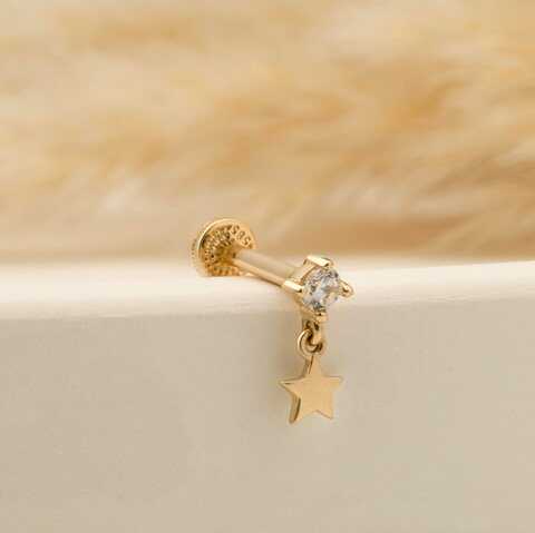 Taşlı Yıldız Sallantılı Minimal Tragus Piercing