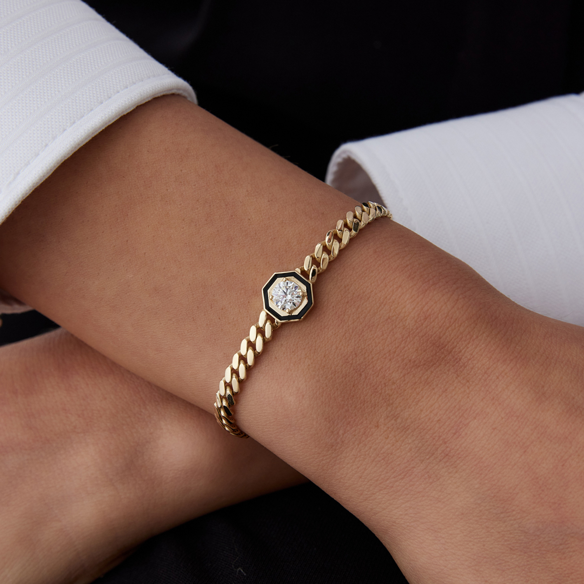Tektaşlı Siyah Mine Sekizgen Bileklik - 1