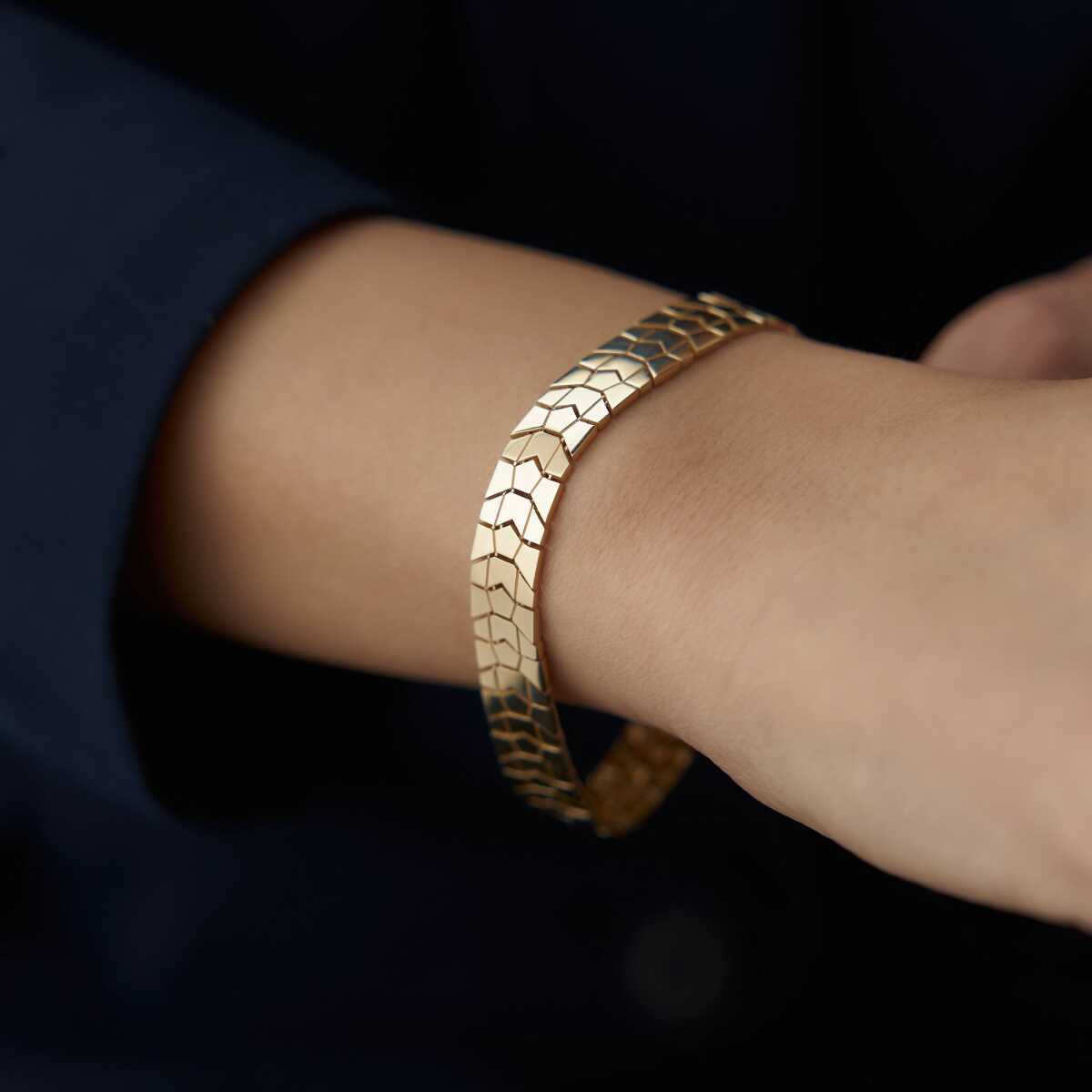 Geometrik Oval Taşlı Altın Bileklik