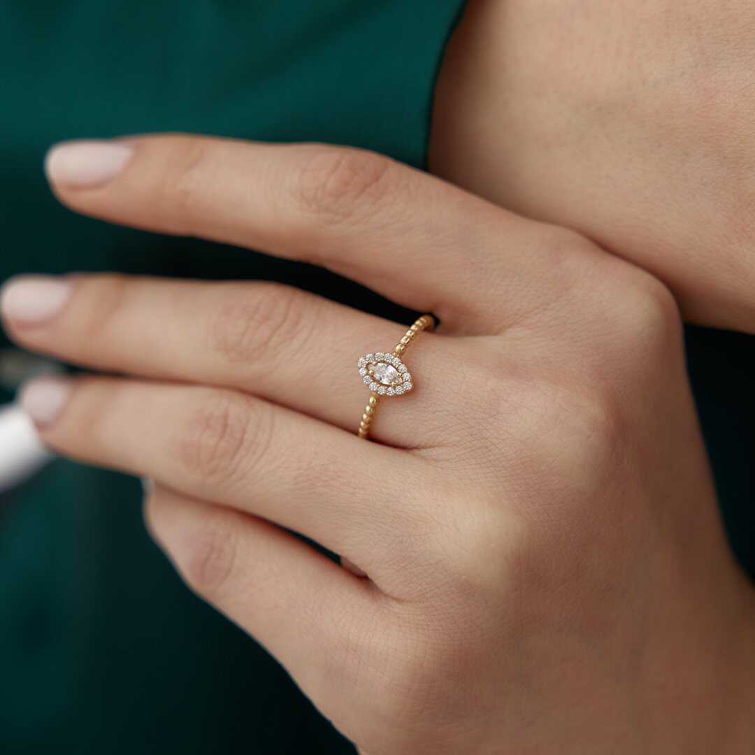Mekik Kesim Taşlı Minimal Altın Yüzük - Arden Mekik Kesim Taşlı Minimal Altın Yüzük - Arden (1)