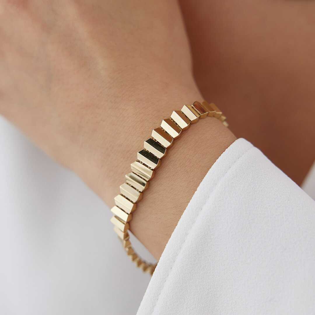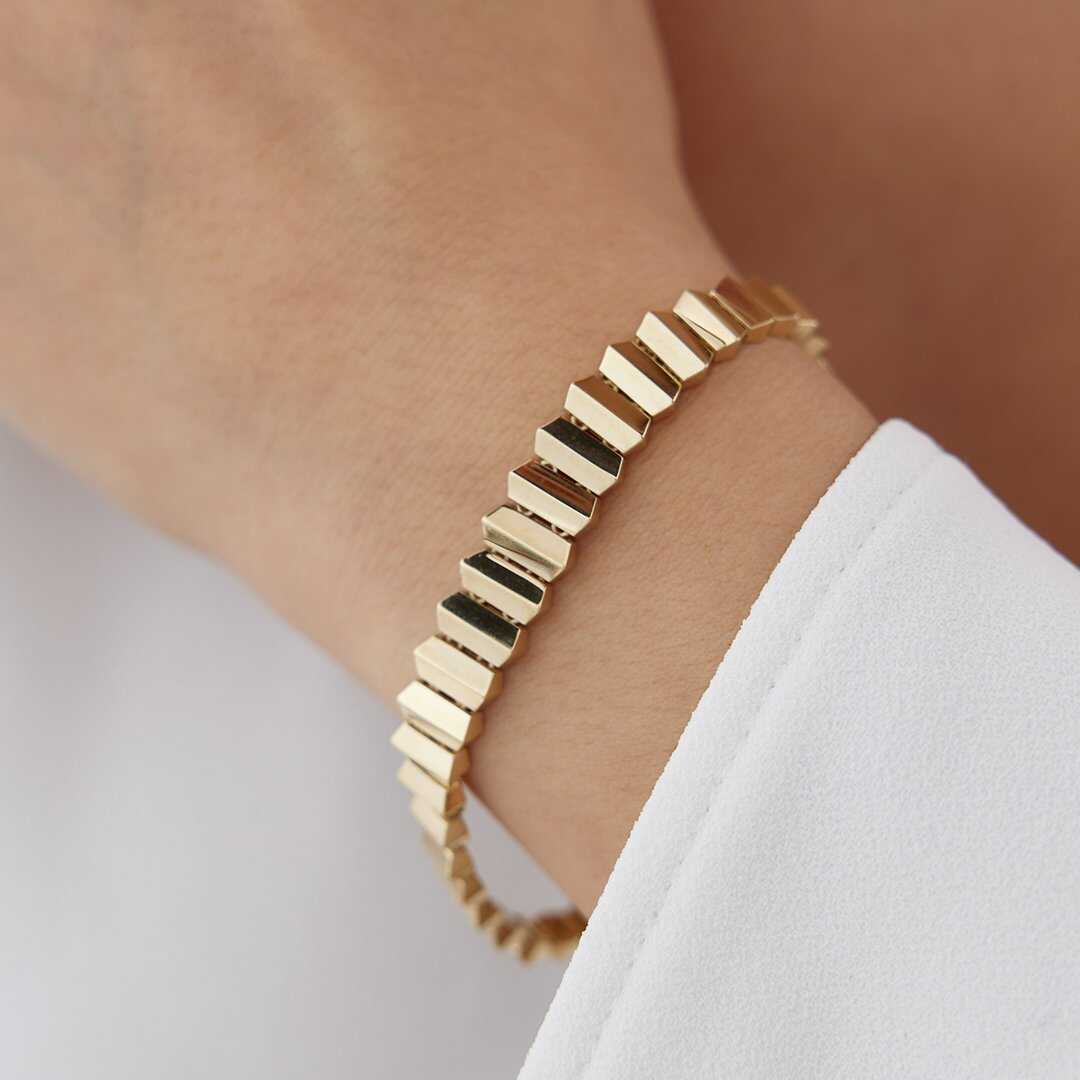 Geometrik Oval Taşlı Altın Bileklik