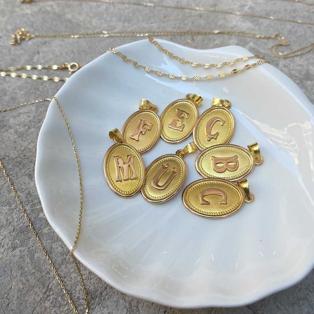 Uzun Oval Plaka Harf Kolye Ucu - 1