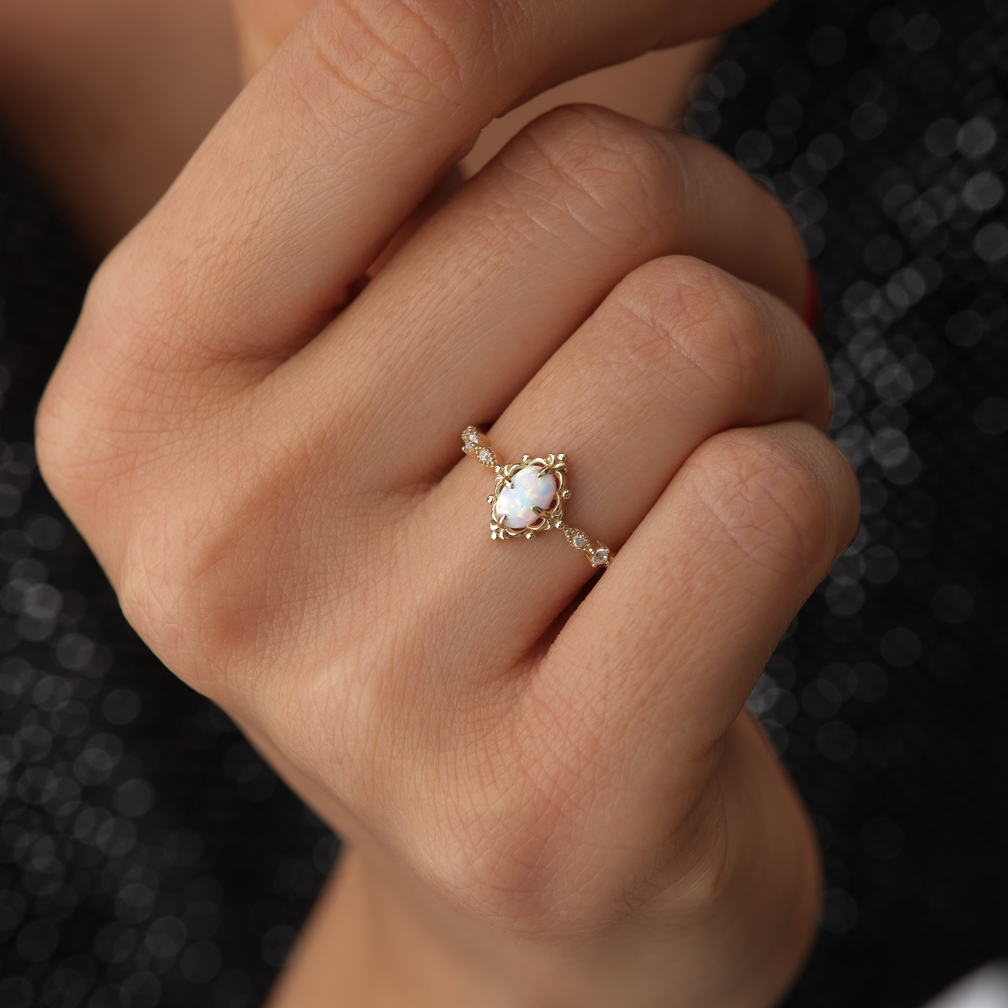 Opal Taşlı Vintage Altın Yüzük