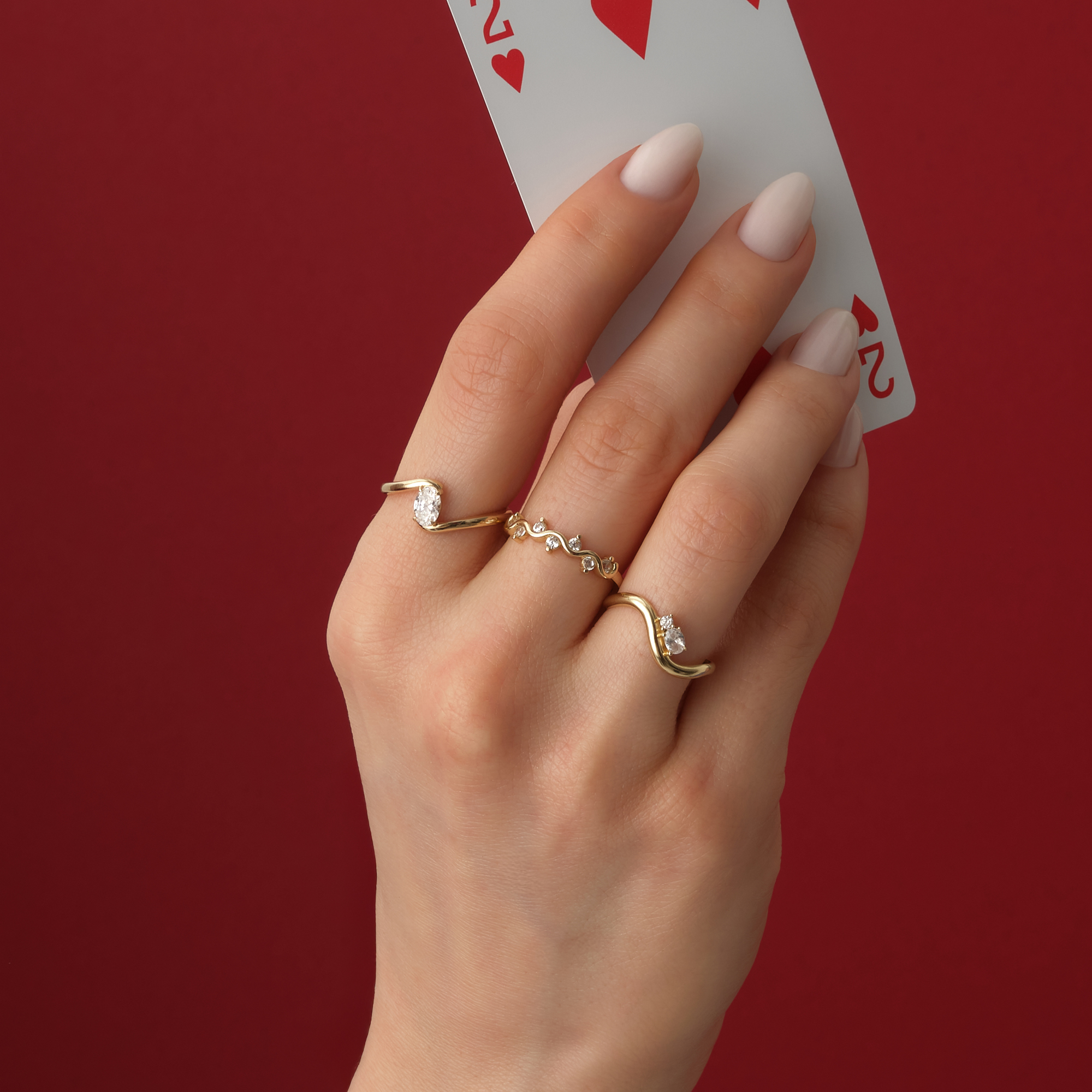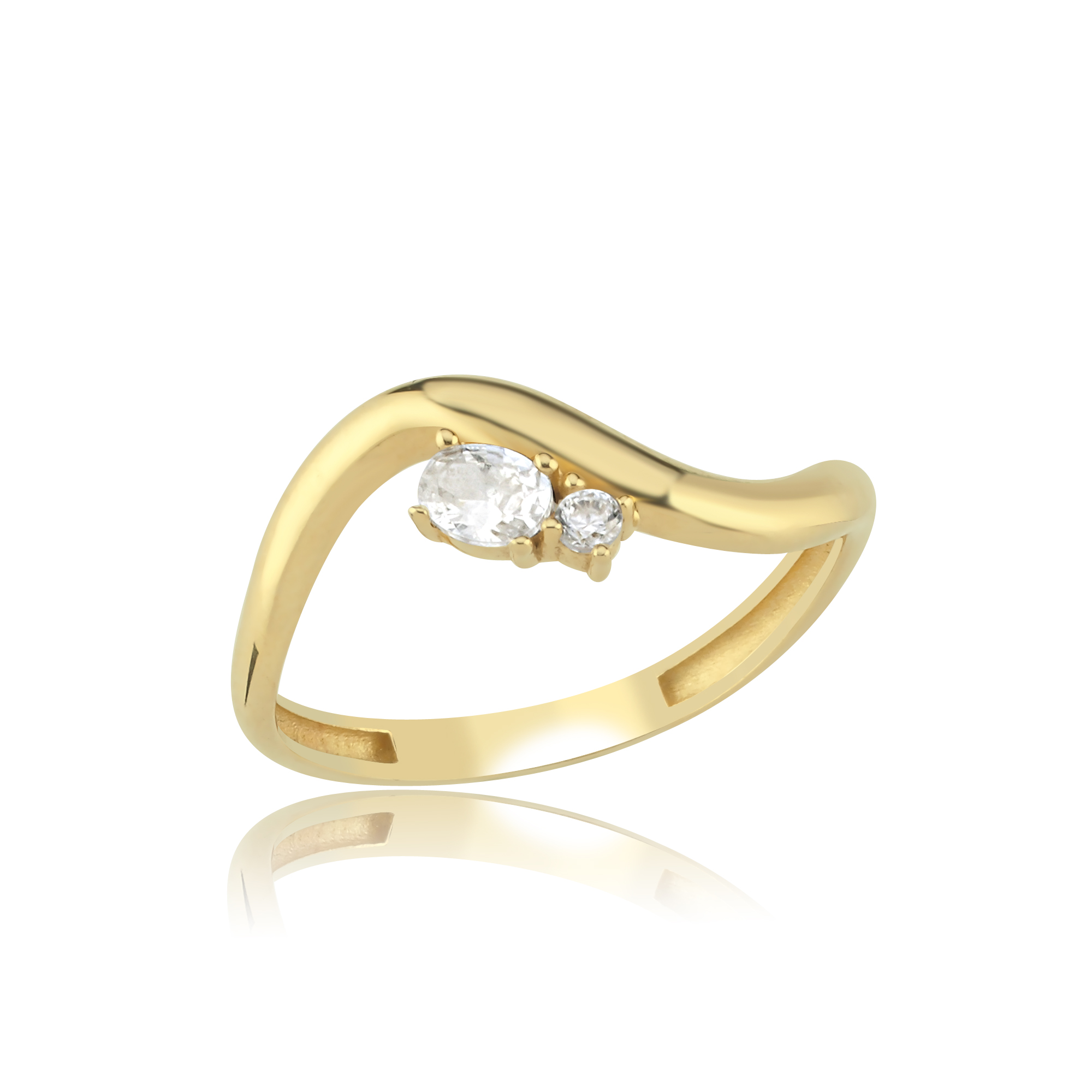 Dalga Form Çift Taşlı Altın Yüzük