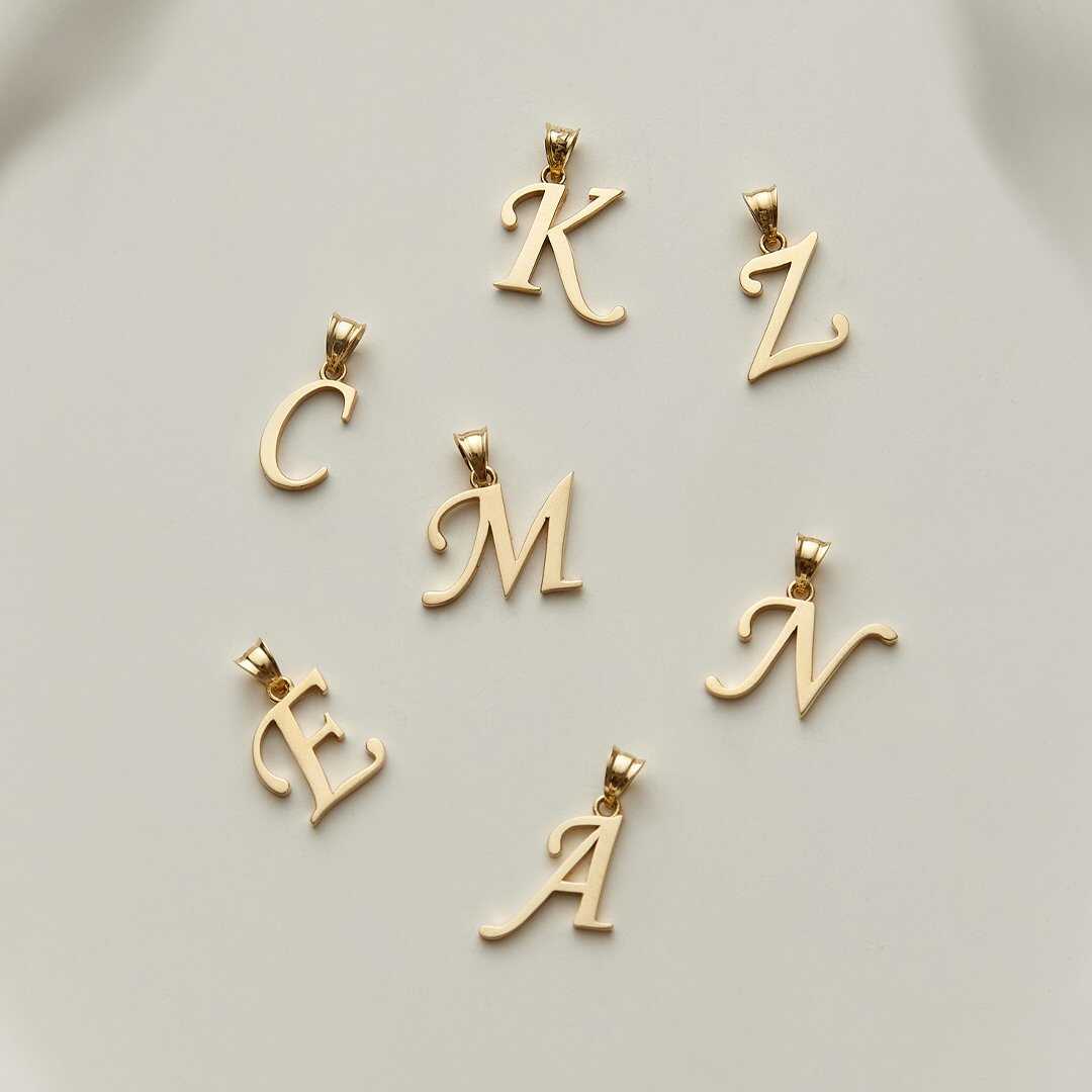 İtalik Çizgi Taşlı Harf Kolye Ucu