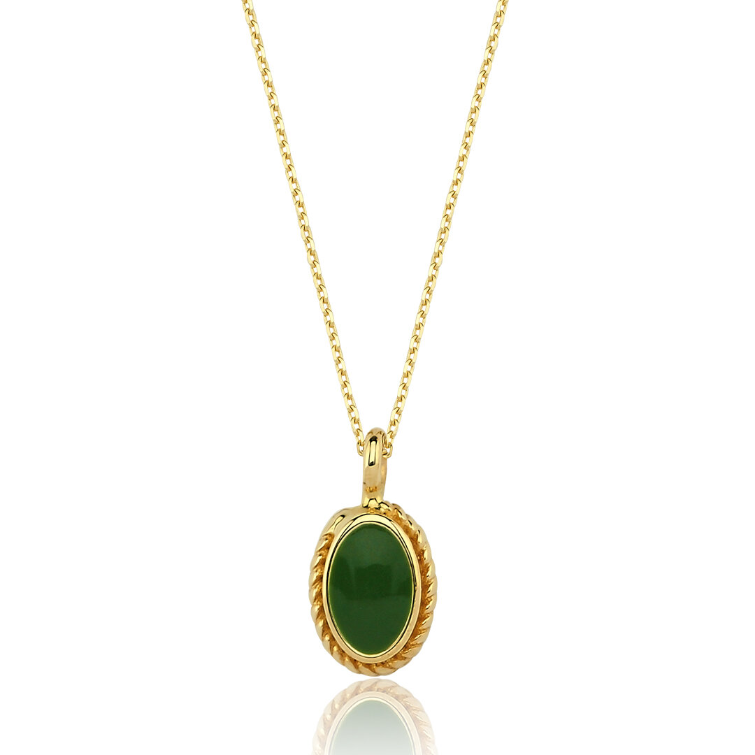 Çerçeveli Yeşil Merkez Taşlı Altın Kolye