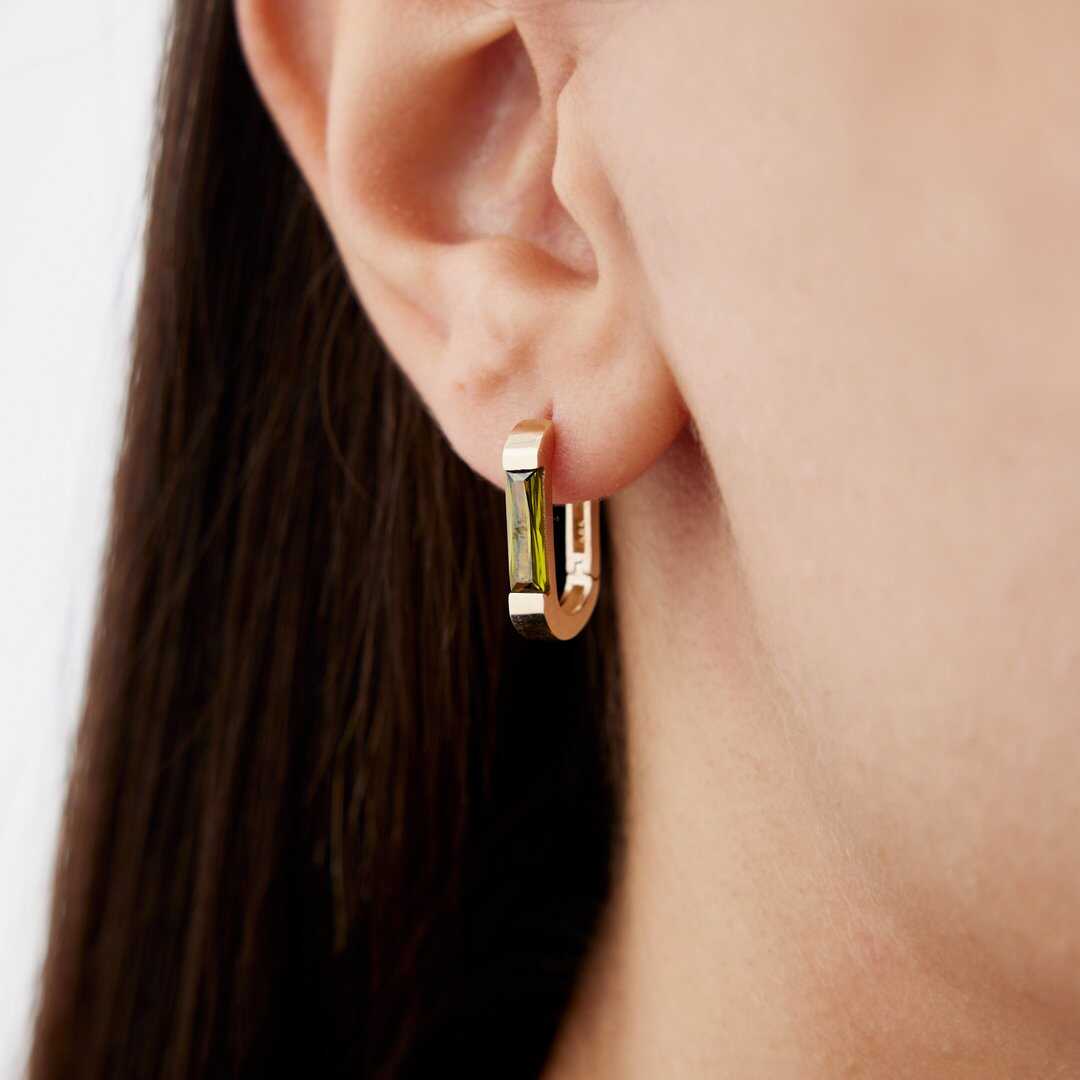 Yeşil Taşlı Ractangle Küpe