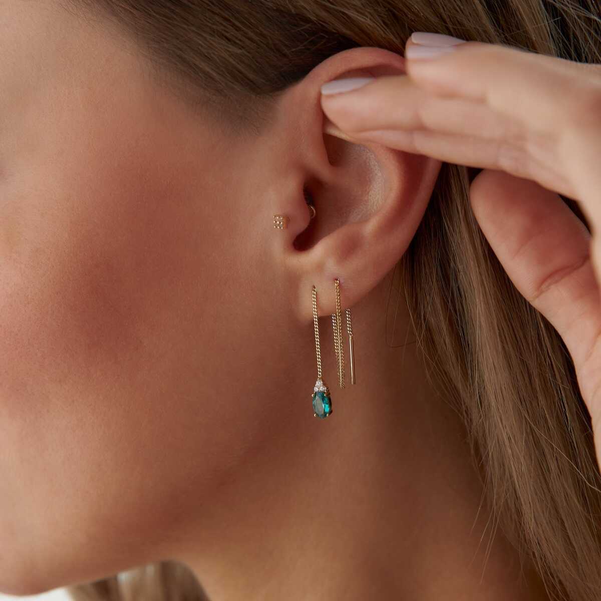 Twin Halka Zincir Sallantılı Küpe - Rayna Twin Halka Zincir Sallantılı Küpe - Rayna (1)