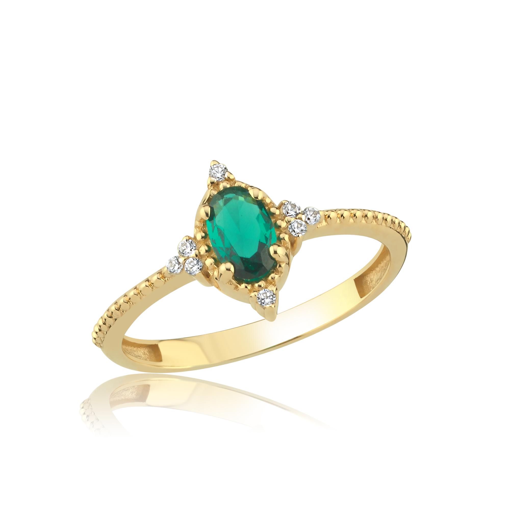 Geometrik Baget Yeşil Taşlı Altın Yüzük