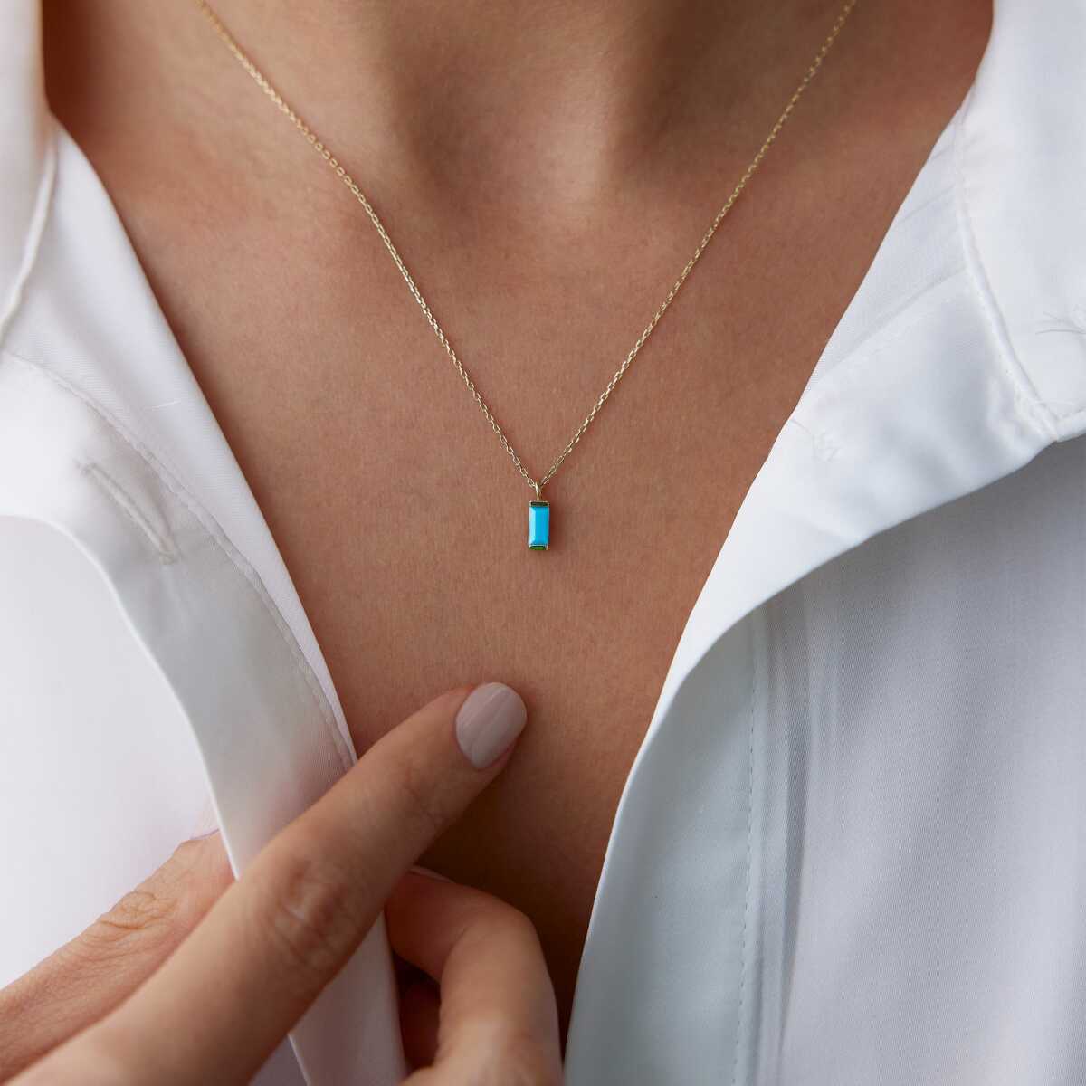 Zarif Mavi Opal Taşlı Kolye